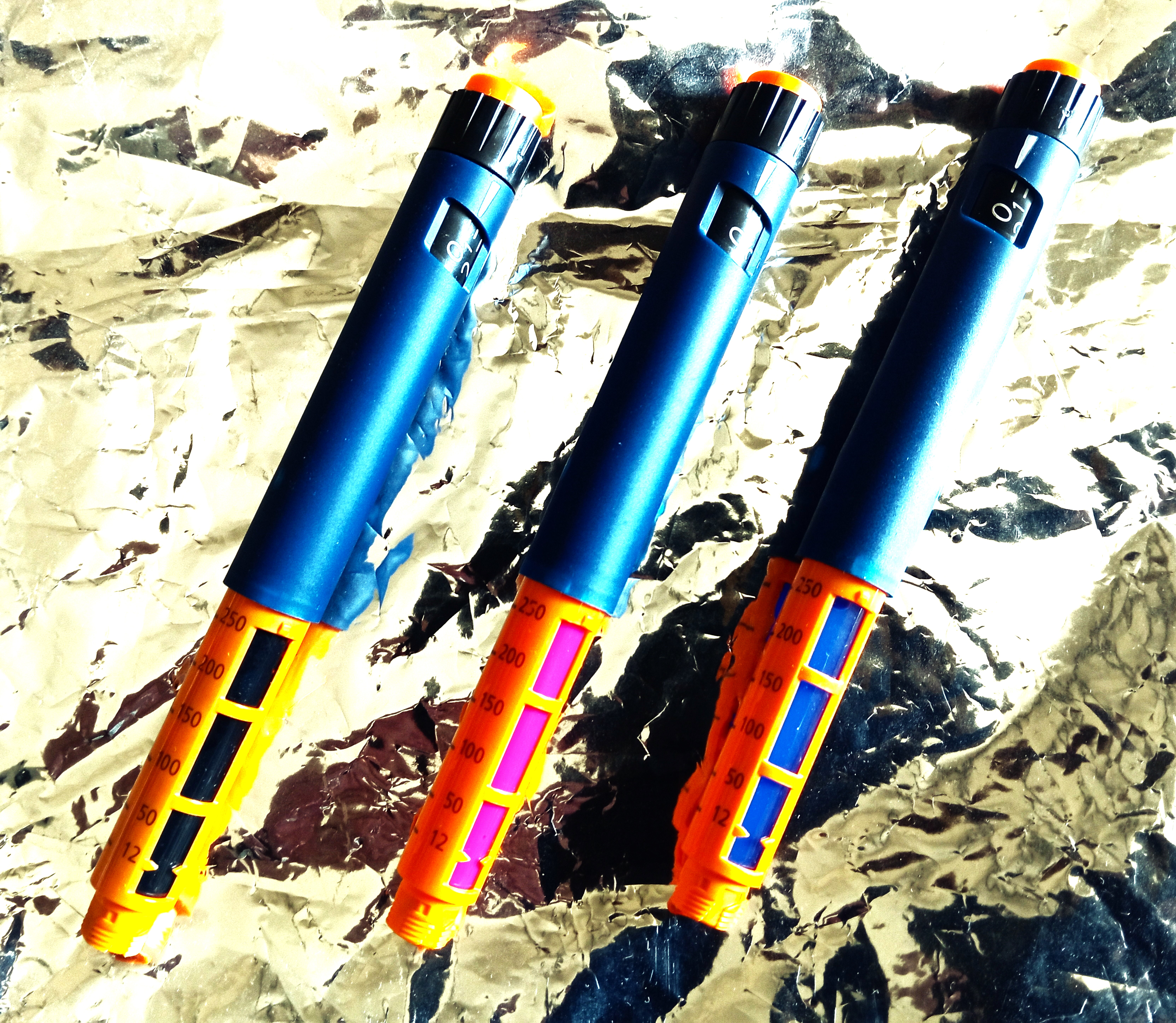 Tecnica: Acrilico con unico utilizzo in RRR di penne di insulina e aghi + sangue